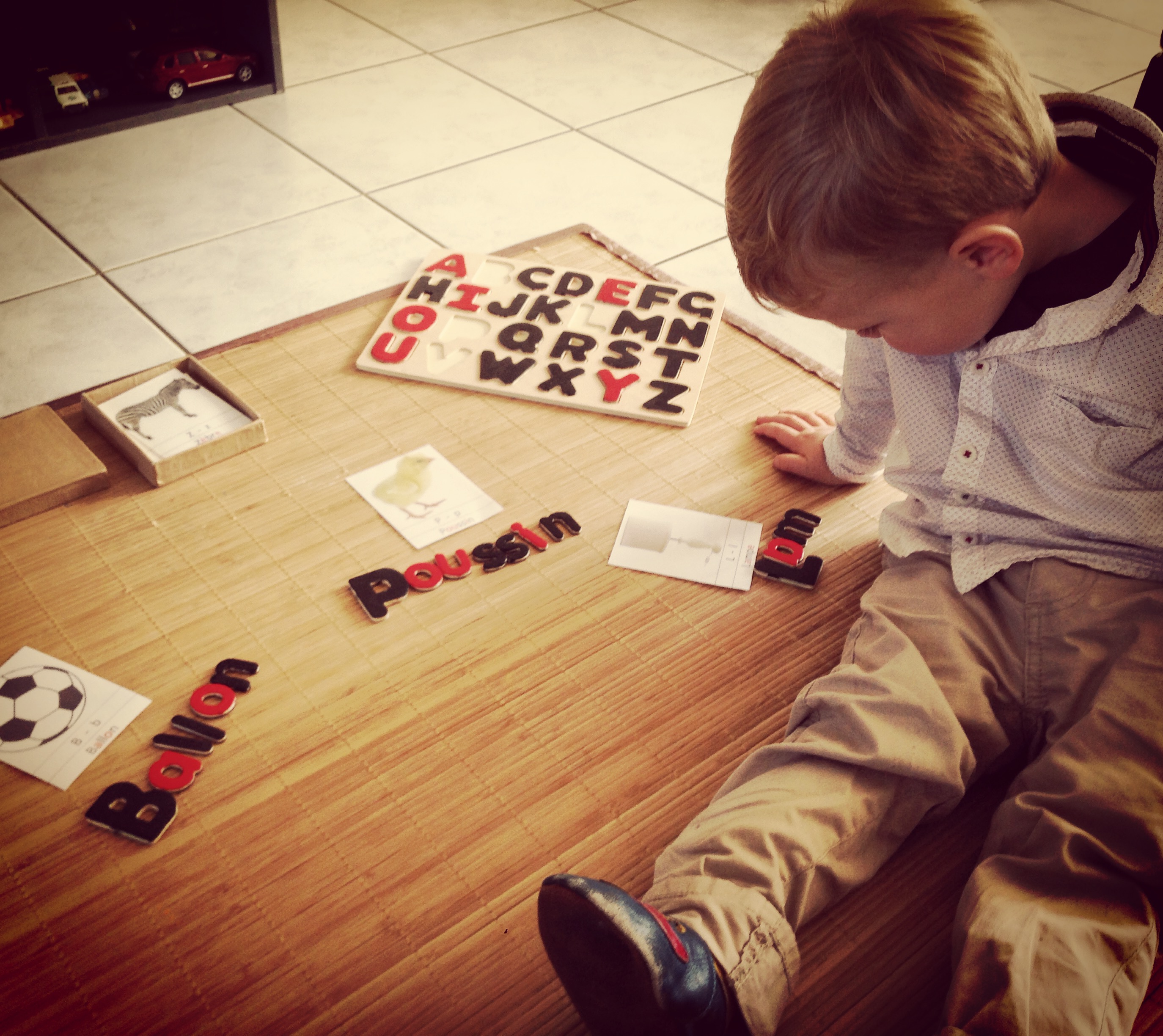 A ce jour (3 ans), il connaît toutes les lettres de l’alphabet et commence à lire quelques phonèmes.