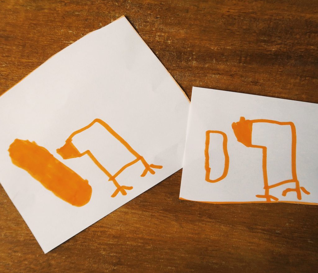 Arthur aime tout particulièrement fabriquer des choses pour les offrir aux autres. En plus des œufs en chocolat, il a d’ailleurs préparé un petit dessin pour chacun représentant une poule avec son œuf ! (Ça doit être son esprit « pratico-pratique » !!!)